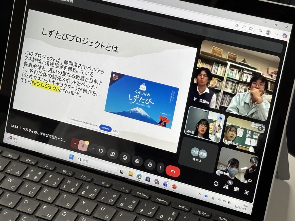 ベルテックス静岡とのコラボ企画「ベルティのしずたび」高校生コラボプロジェクトは、具体的に動き出しています。この度、10月31日(火)に牧之原市のご担当者様に対し、オンライン会議機能を利用したインタビューを実施しました。