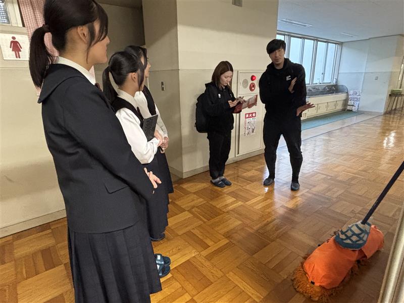 また同日、生徒が考案・製作したベルティをモチーフにしたモップ(ベルティモップ)の見本が完成し、ベルテックス静岡の担当者の方と打ち合わせを行いました。
