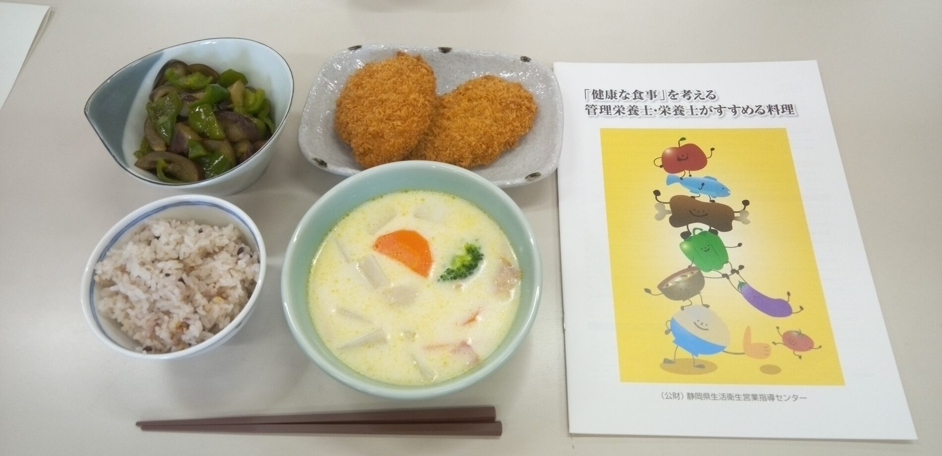 当日は、管理栄養士の方から、健康な食事によって人生を楽しく豊かに過ごすことができることや、だしや素材の旨味を使い、塩分を濃くしなくても十分においしく調理できるコツなど、多くのことを学ぶことができました。実習では多くの野菜や雑穀米を使い、栄養バランスと彩の良い献立に仕上げることができました。今後の食生活に活かしていきたいと思います。