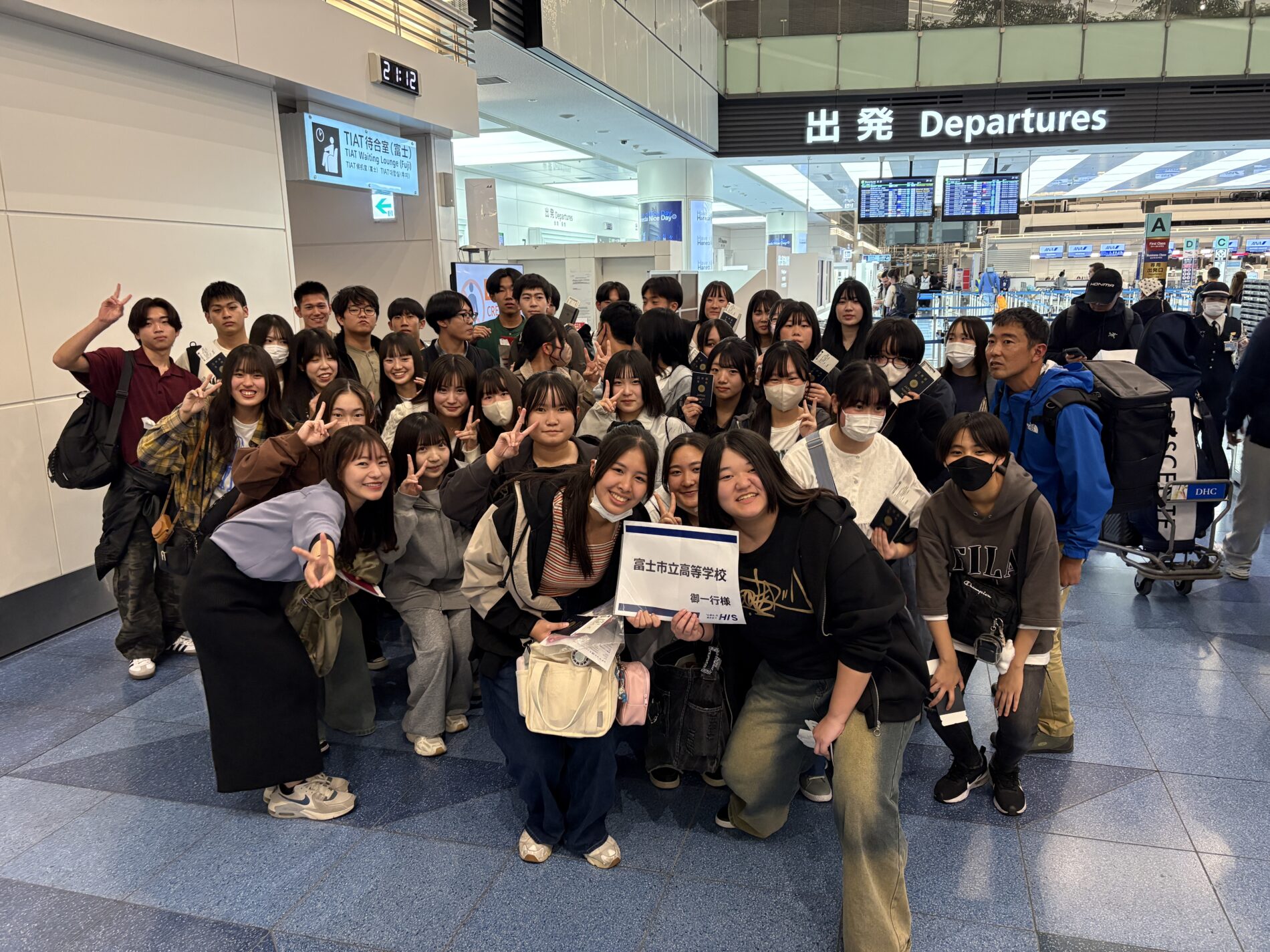 この手続き一つ一つが、国際的なビジネスや観光の流れを肌で感じる貴重な機会となりました 。教員や添乗員からの注意事項を確認し、厳格なセキュリティチェックや出国審査を終え、いよいよ搭乗です 。