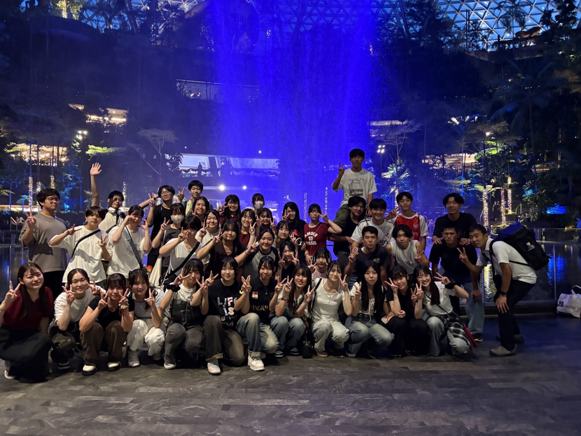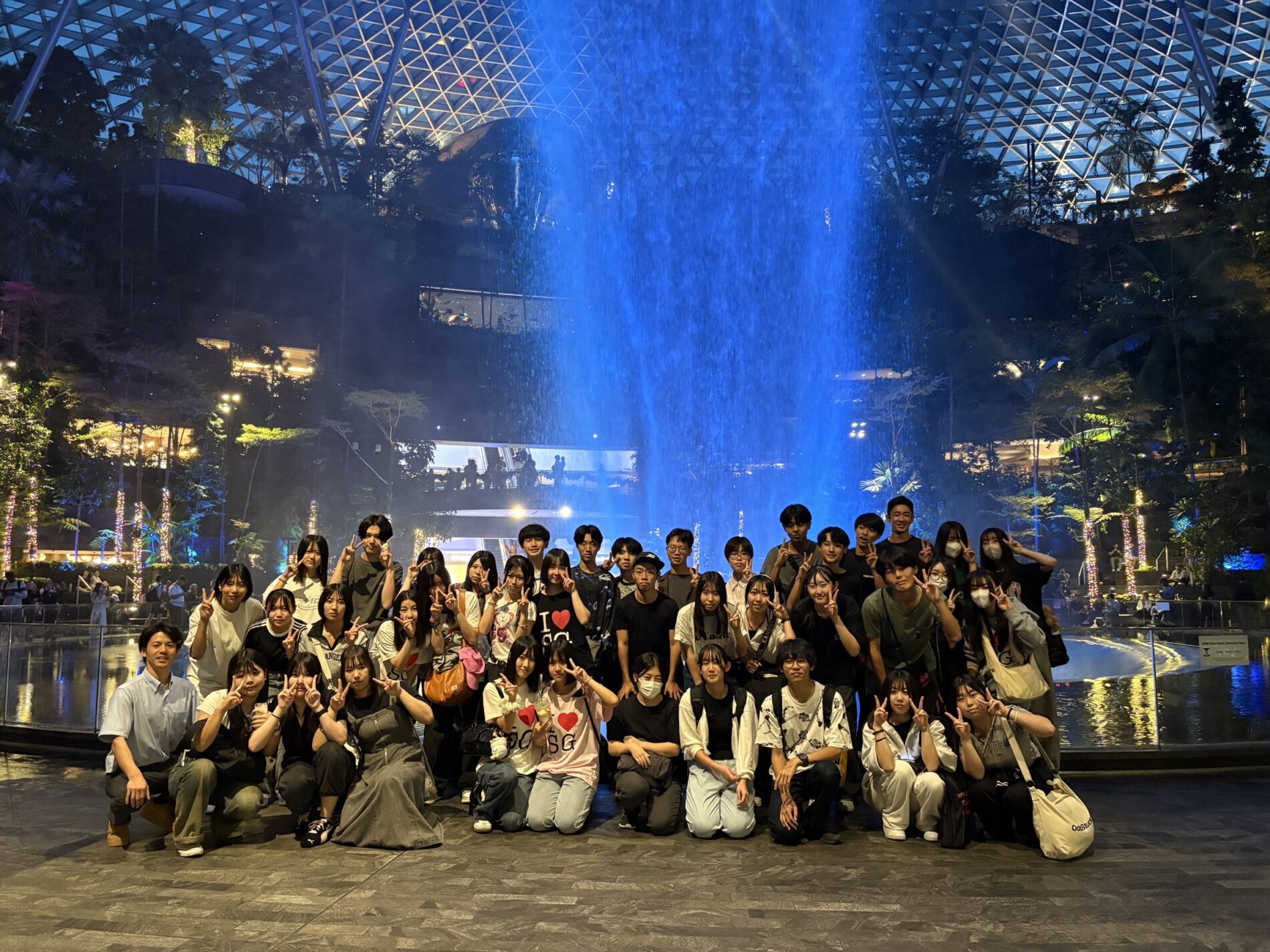 空港に到着後、まずはシンガポールが世界に誇る複合施設「ジュエル」を訪れ、クラス写真の撮影を行いました 。この施設は、空港という概念を超えた空間デザインと観光機能を持っており、最後の観光ビジネス研修として、その革新的な取り組みを肌で感じることができました 。