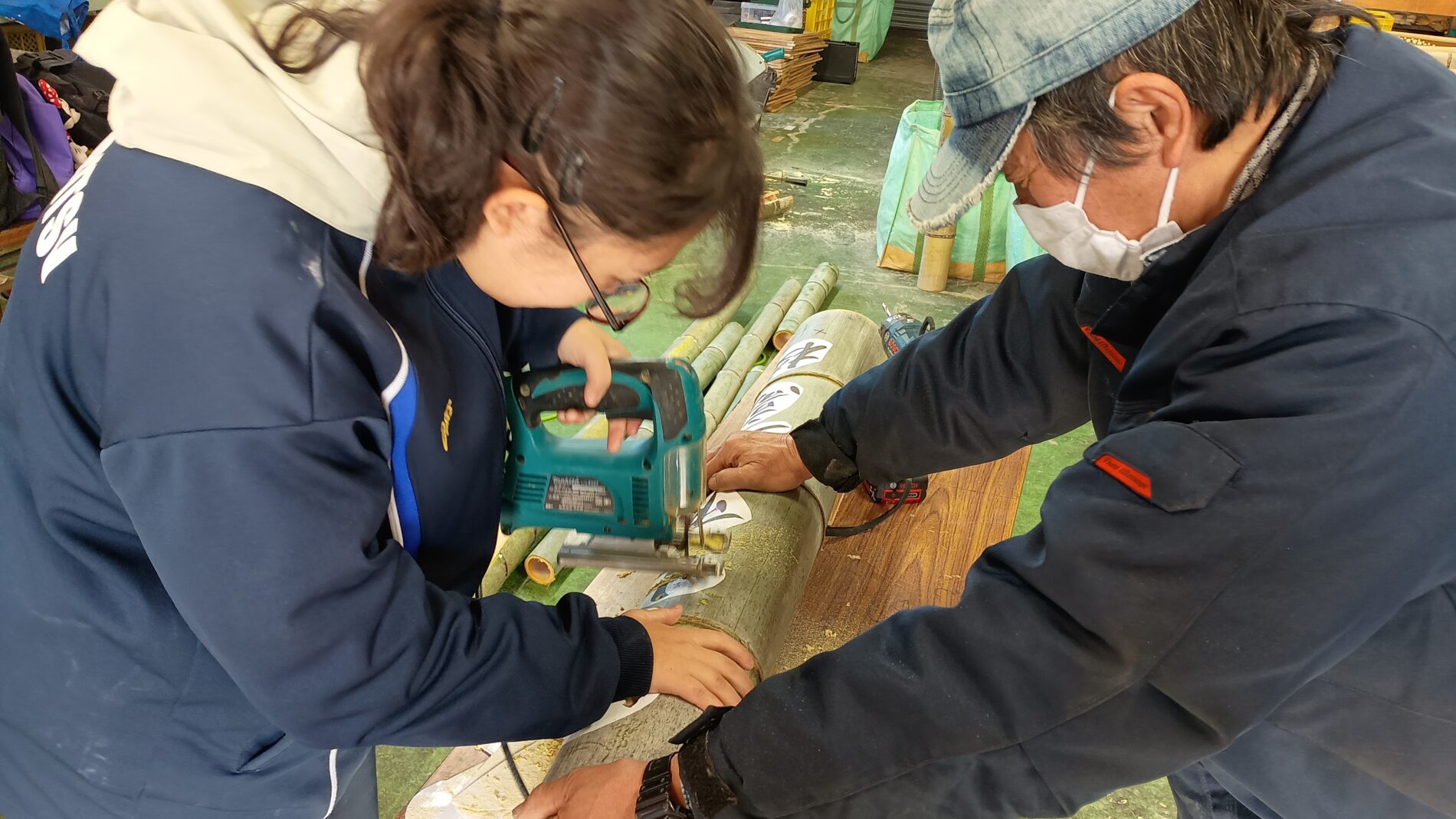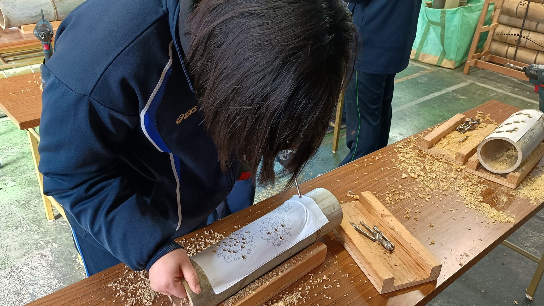 12月7日(日)、3年生の竹灯籠プロジェクトで、竹の伐採体験と試作品の作成を実施しました。竹の伐採については日本物流株式会社様、試作品の作成にはFiiL-net様にご協力をいただいています。