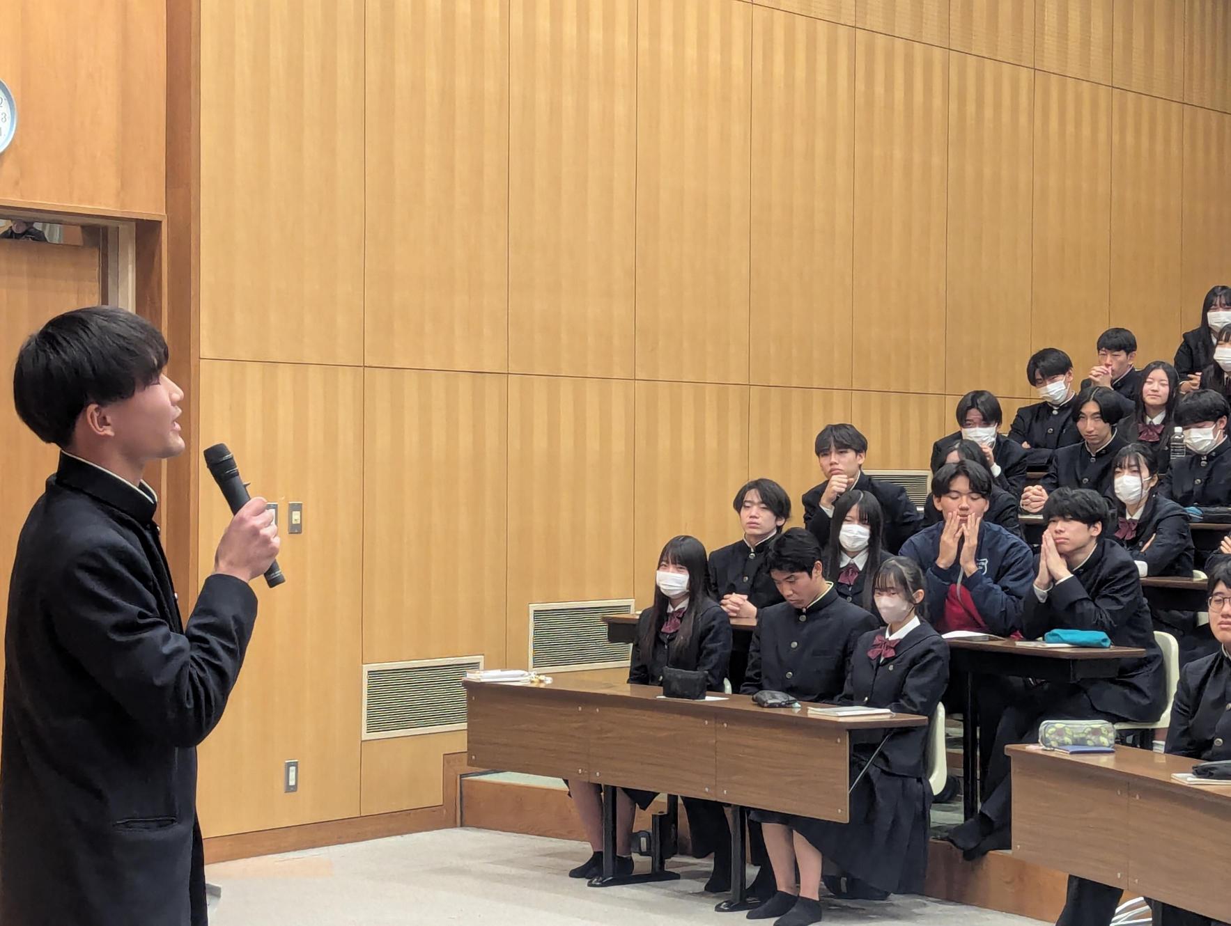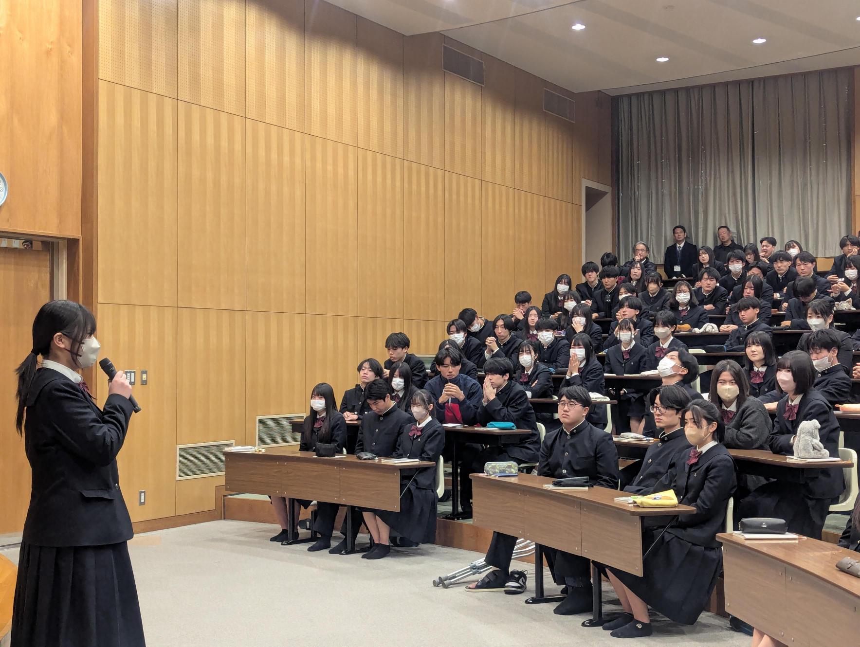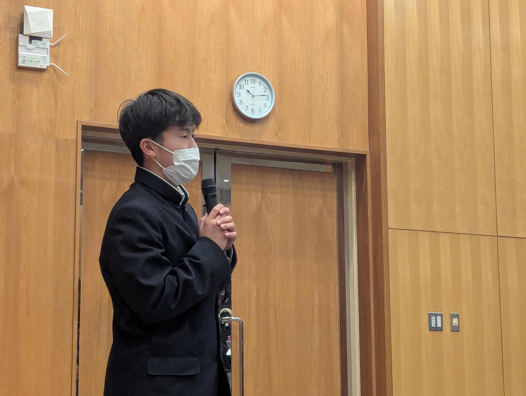発表したのは、順番に34HR七宮美桜さん、31HR鈴木萌翔さん、35HR佐藤和海さん、32HR杉山正宗さん、36HR増田伸羽さん、33HR丸田楽空さんです。