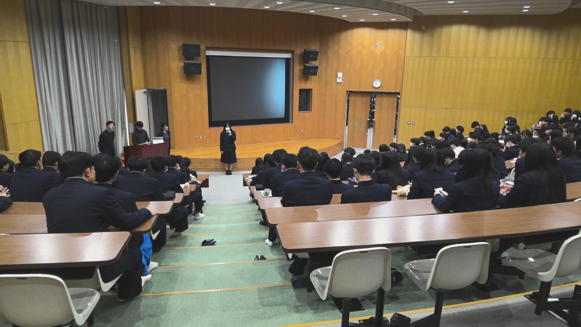12月19日(金)2学期最後の学年集会を行いました。それぞれのクラス担任から「イチオシ」の生徒を指名して、指名された生徒が高校3年間を振り返り乗り越えてきたことや成長できたと感じたこと、これから受験を控えた仲間へのエールなど、今の思いを発表しました。