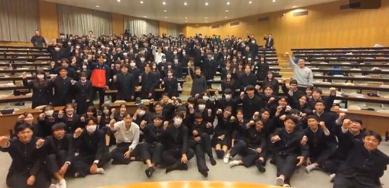 最後に学年主任が「イチオシ」として藤枝MYFCに内定している36HR山崎絢心さんを紹介し、学年で応援動画を撮影しました。