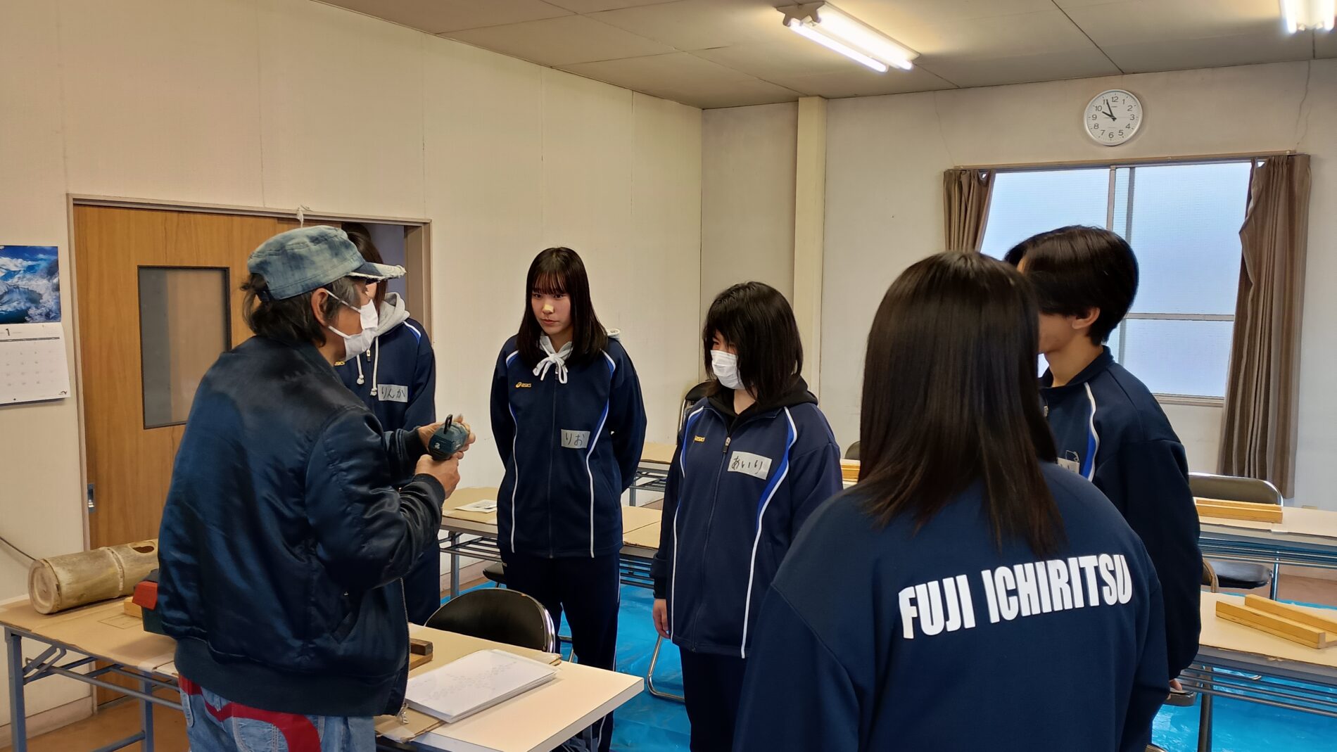 2月11日(水)、岳南電車株式会社本社で竹灯籠づくり体験を行いました。この企画は3年生が1年以上かけて企画した竹灯籠プロジェクトの一環で、竹灯籠をつくり、岳南電車に駅に飾ろうというものです。