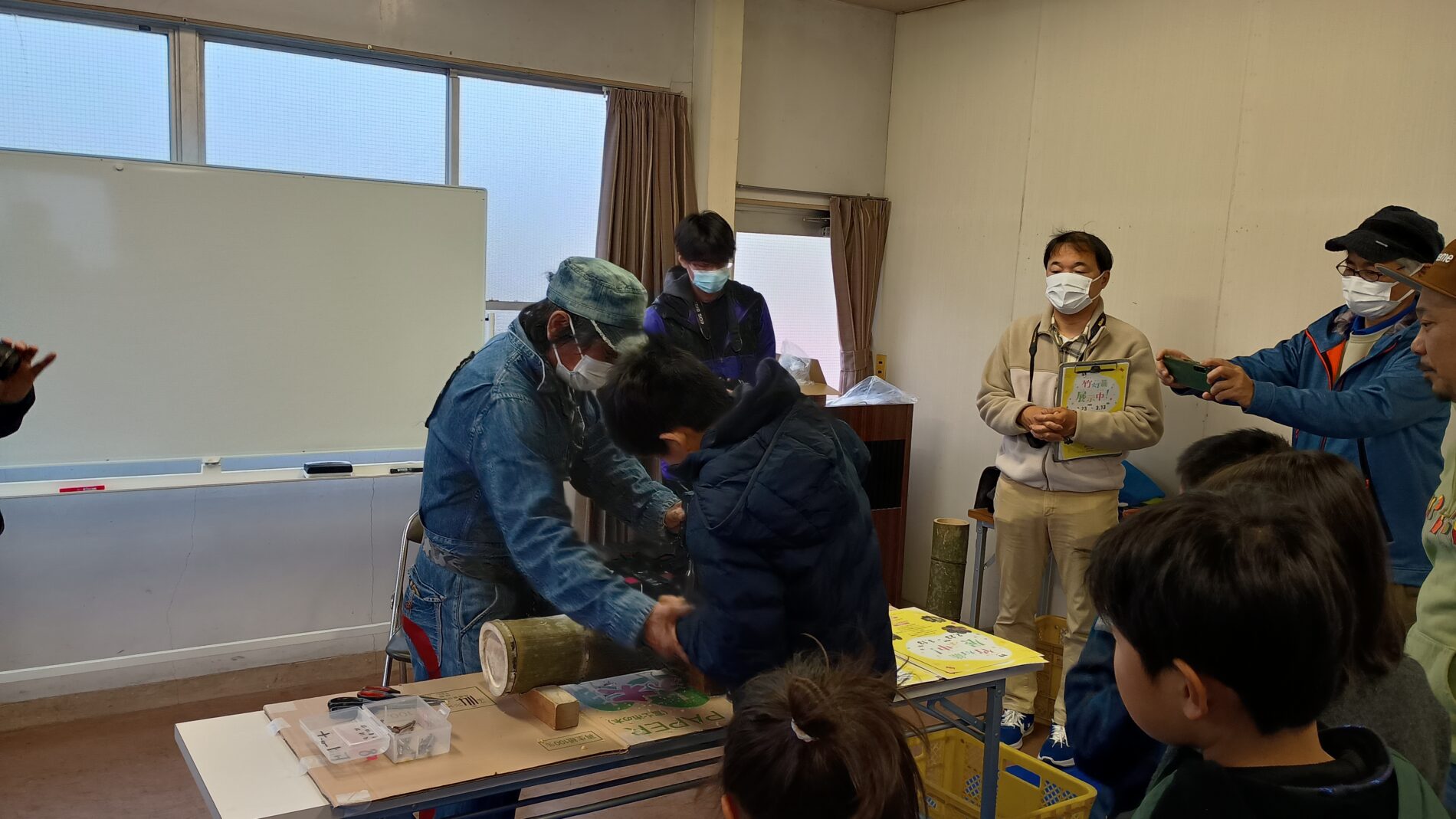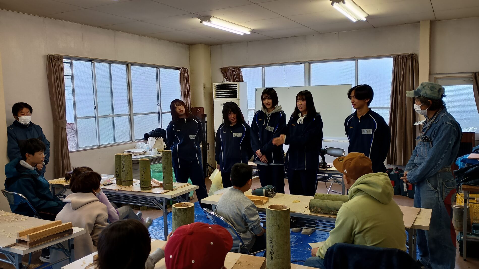 「竹に触るのも初めて」、「つくるのが楽しい」と、参加してくれた小学生からはとても充実した感想が聞けました。大きな穴を開ける際にはちょっと大変ではありましたが、高校生が上手くサポートしてくれました。