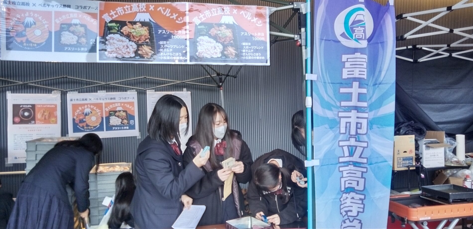 アスリート弁当の企画・販売 2026.02.19 家庭科「家庭基礎」食分野にて、1年生スポーツ探究科の生徒達がベルテックス静岡との弁当企画・販売の授業に取組んできました。2/7、8北里アリーナで開催されたホーム戦にて本校ビジネス部の生徒達が、来場者の方に販売を行い喜んで頂きました。 この記事をシェアする