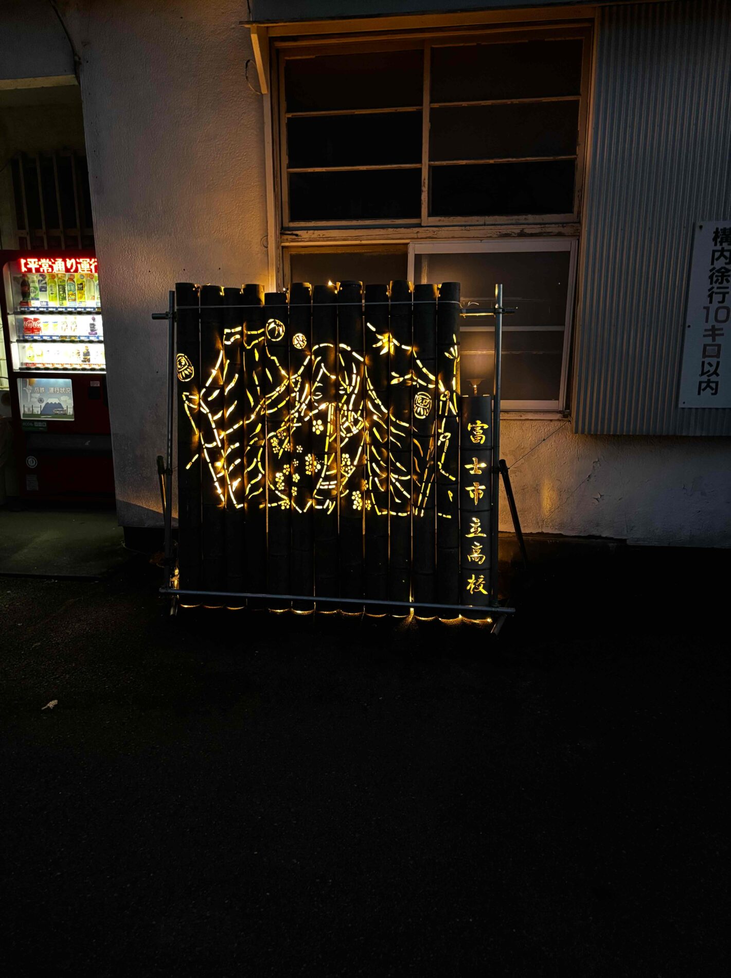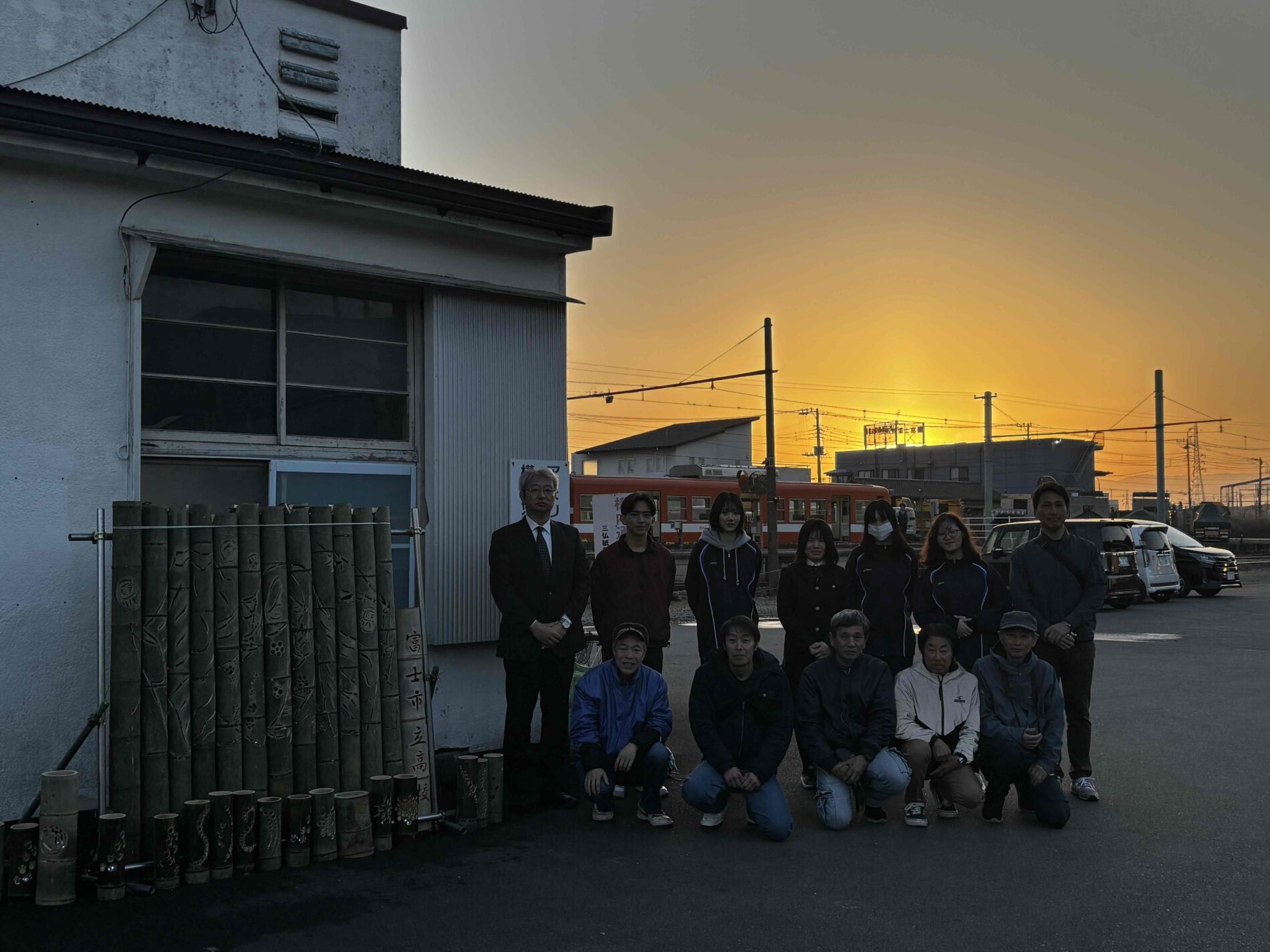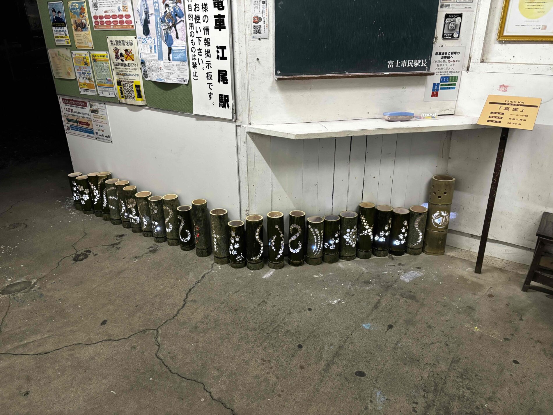 2月23日に岳南江尾駅で竹灯籠の点灯式が行われました。