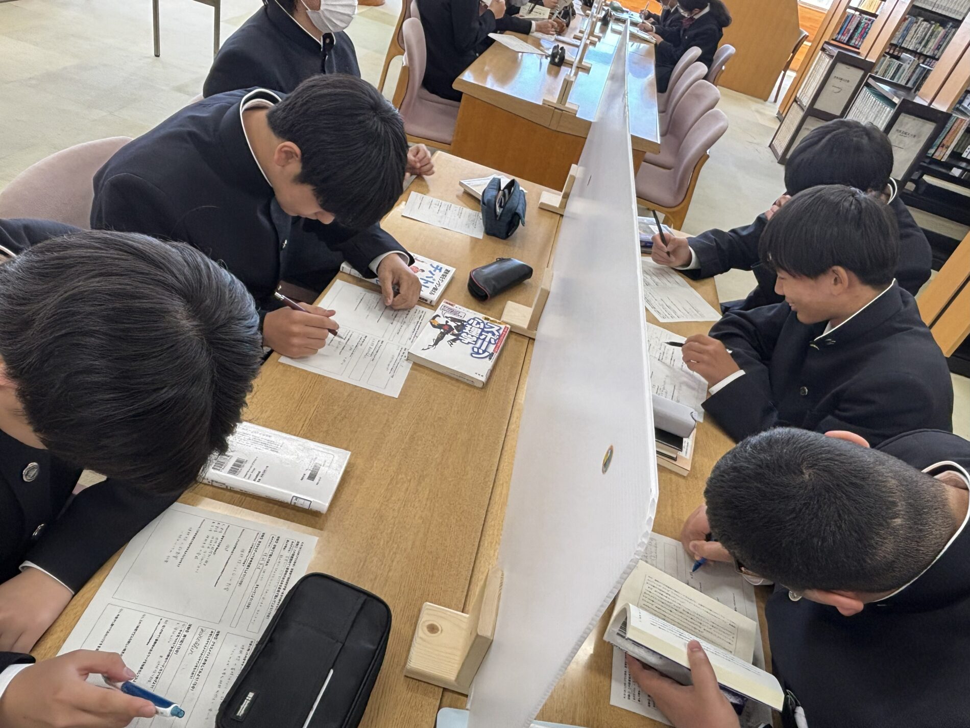 生徒は、『興味がある本を読める!』と思いきや、その本の3冊隣の本を読む、という指示に少し戸惑う様子がありましたが、自分の興味のある分野から少しズレた視点で物事を考えるきっかけになりました。
