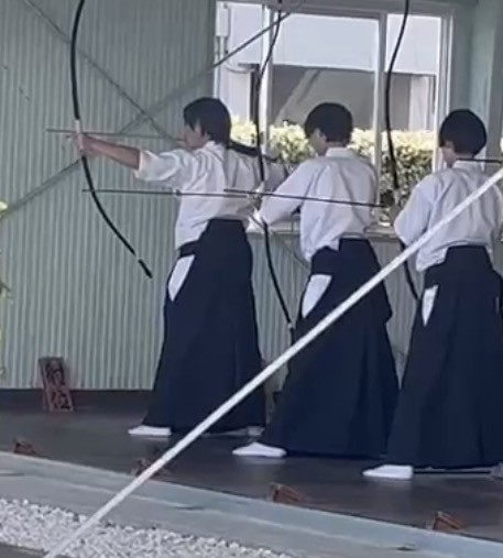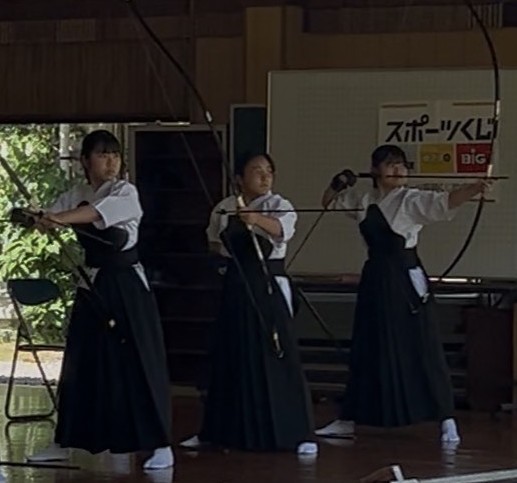 1年生にとっては初めての公式戦となり、緊張した面持ちで弓を引く姿が見られました。