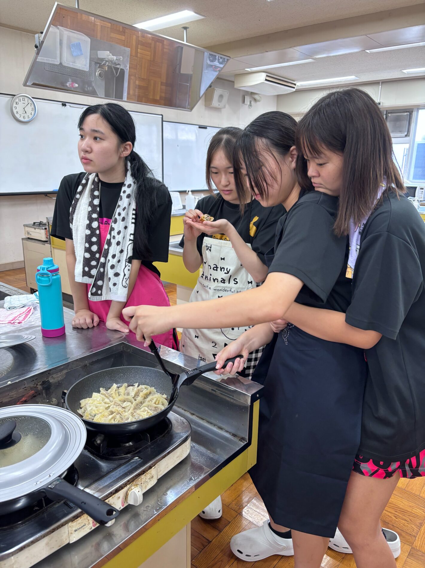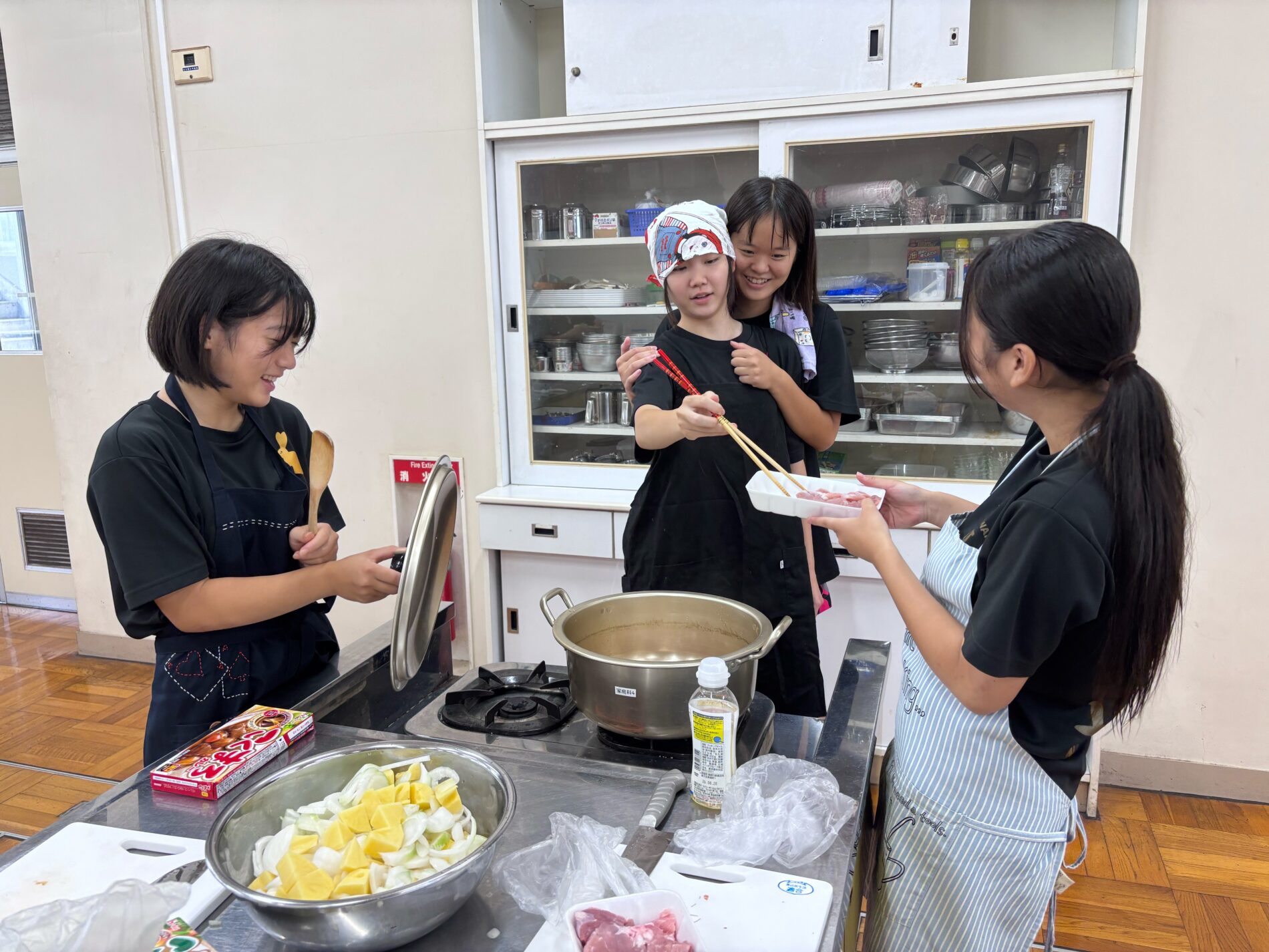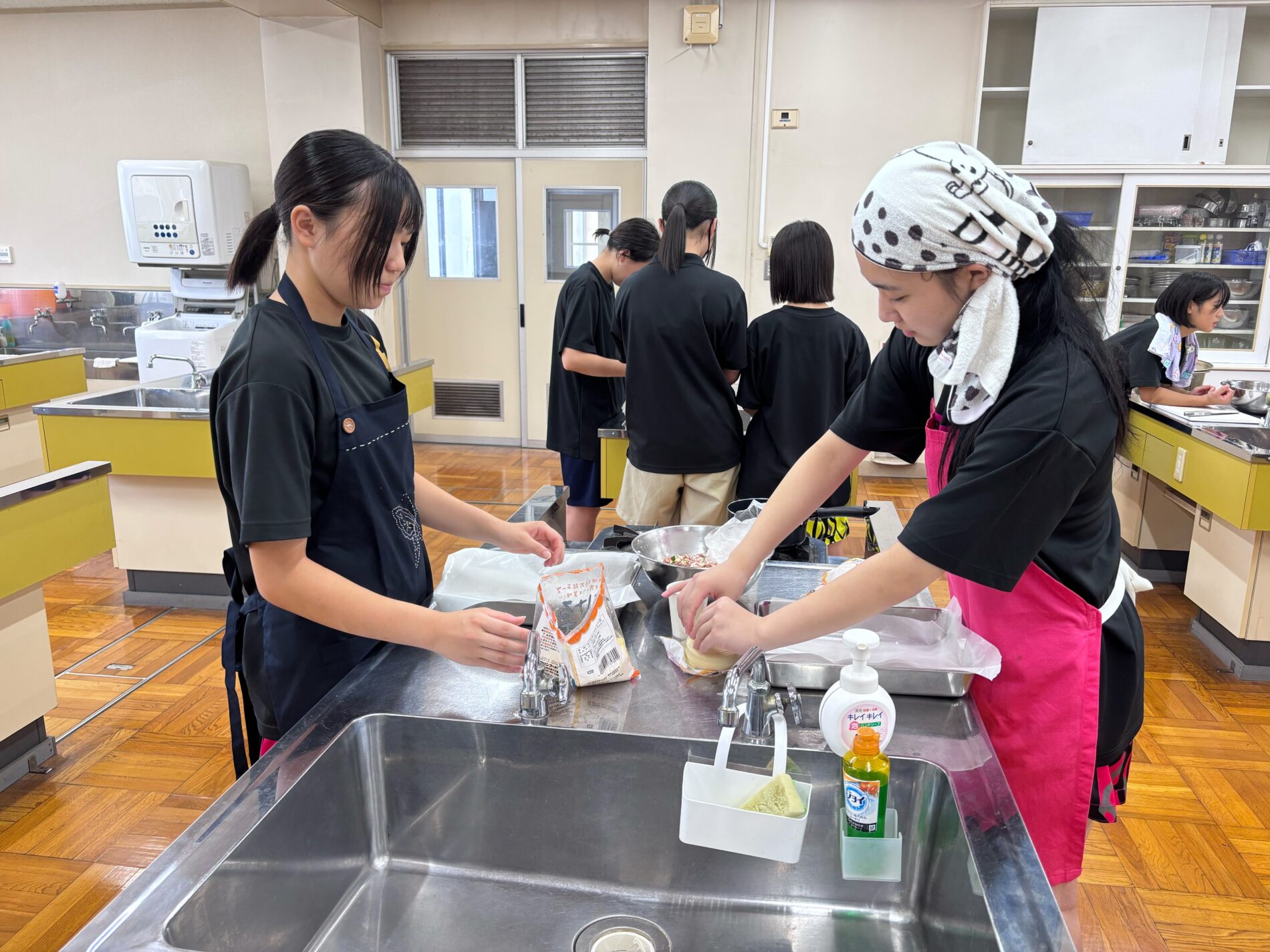 調理では生徒が昼食のメニューを考えぬき、こだわりを持って調理に取り組んだ結果、予定した調理時間を大幅に延長し2時間かけてそうめんやフルーツポンチ、餃子が完成しました。またハンバーグやカレーを作ることもできました。みんなで楽しくこだわりを持って作った料理を食べる姿はとても充実感にあふれていました。厳しい練習を乗り越えたあとの公式戦でもこの姿を見たいと思います。