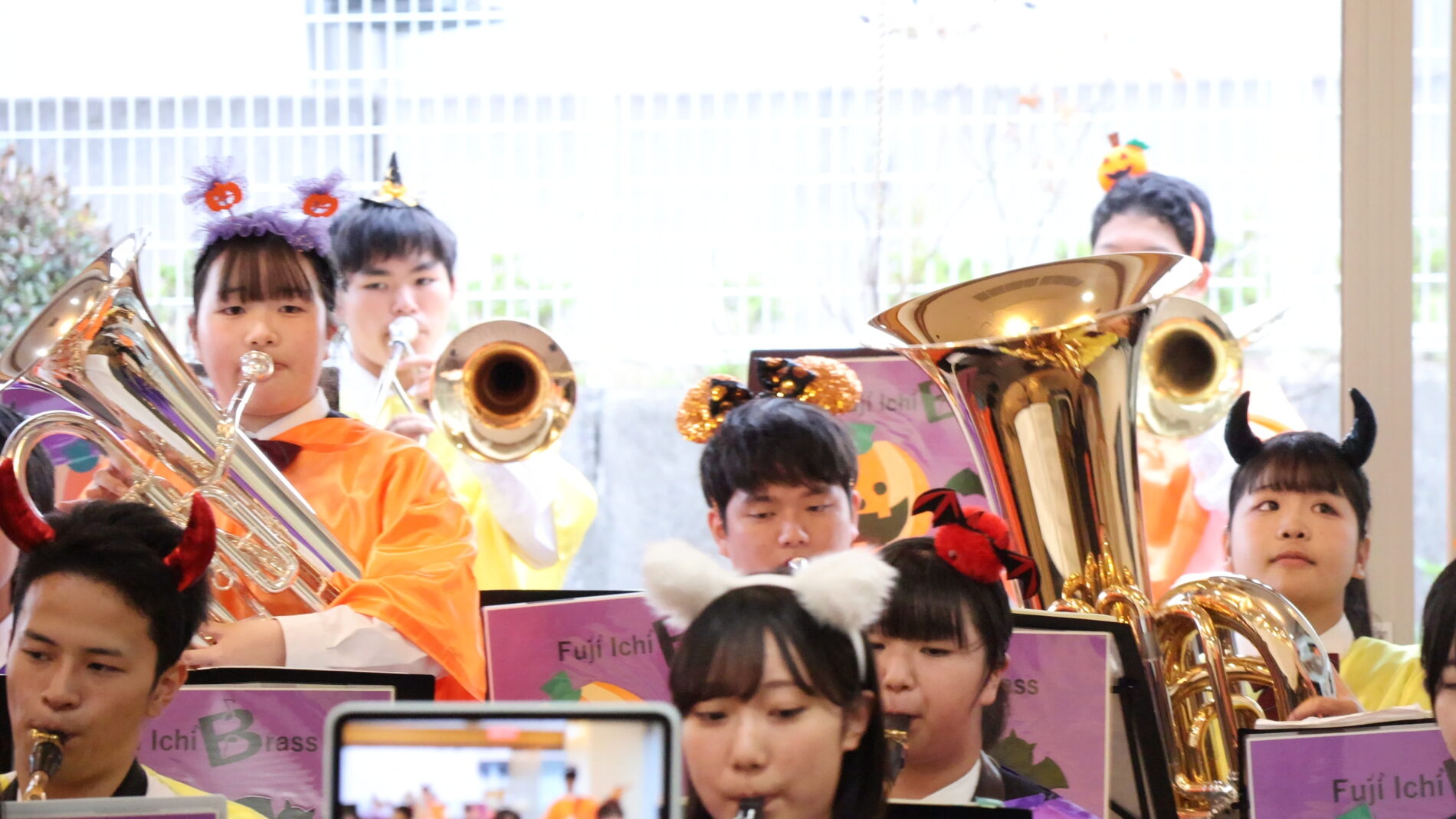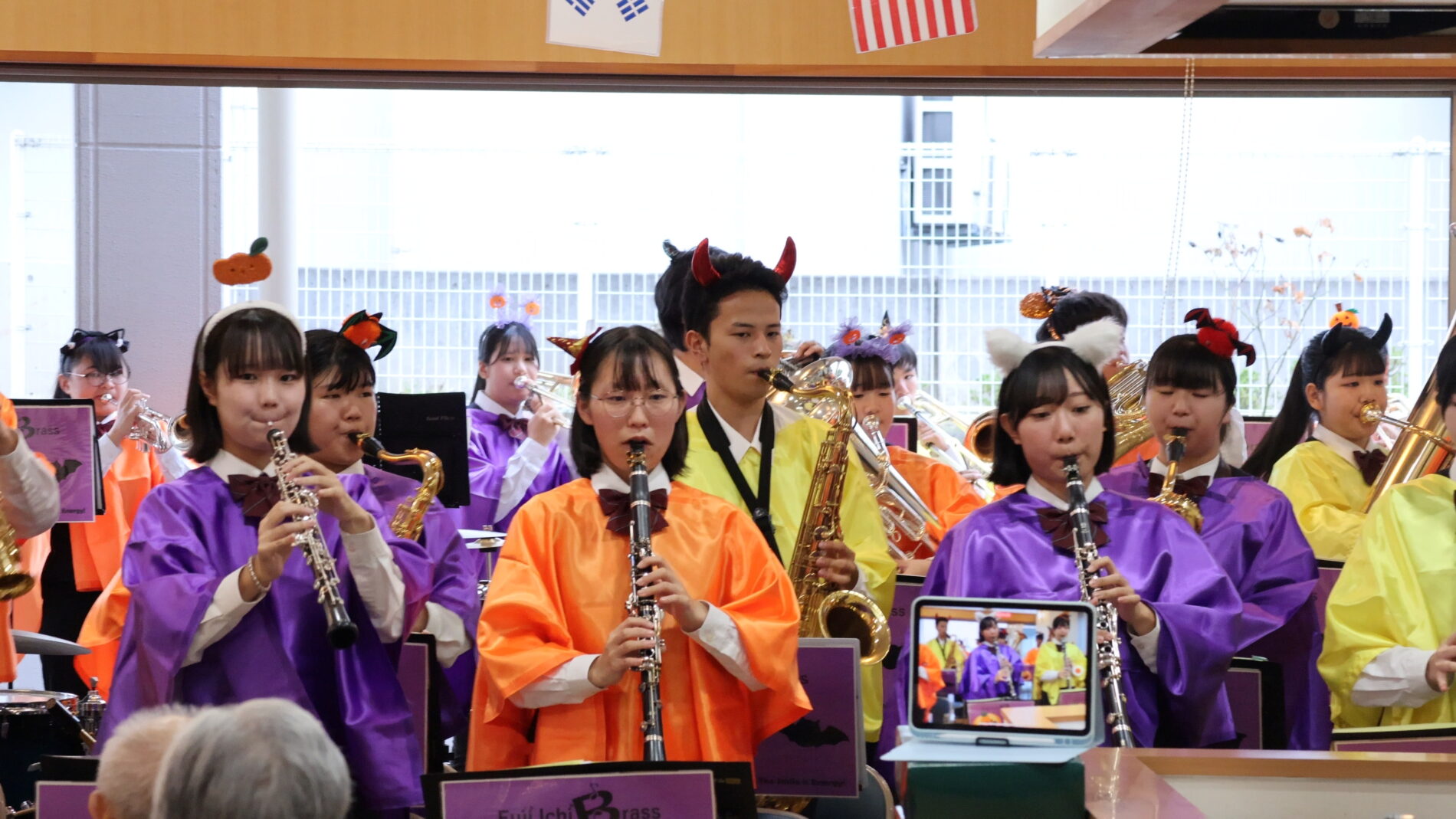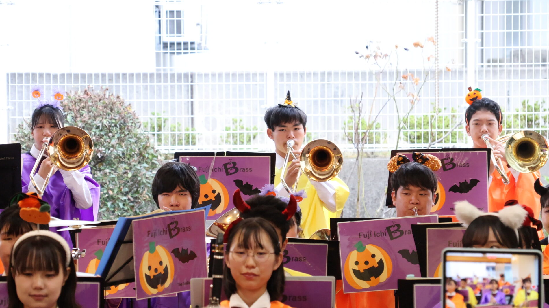今回の演奏は3年生が引退した後の新体制で初めて挑戦するポップスステージでした。部員たちは、これまでの練習の成果を発揮しながら、地域の皆様に楽しんでいただけるよう心を込めて演奏しました。披露した曲は、「テキーラ」「ユーロビートディズニーメドレー」「演歌メドレー」「童謡メドレー」「フジサンバ」「小さな世界」の6曲です。ジャンルの幅を広げることで、幅広い世代の方々に親しみを持っていただけるよう工夫しました。