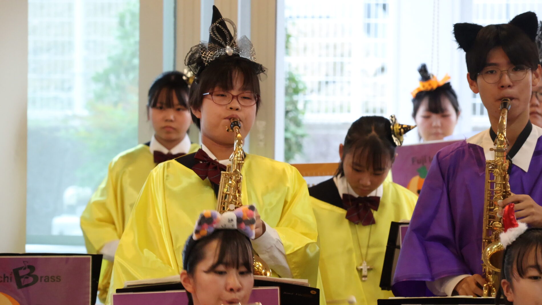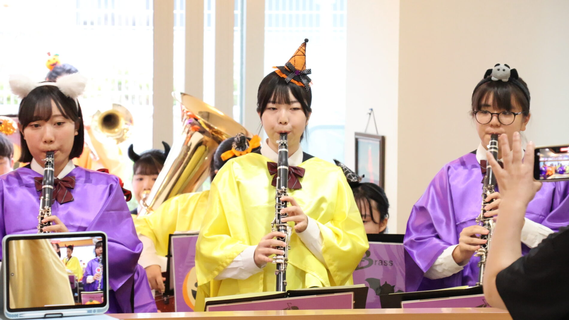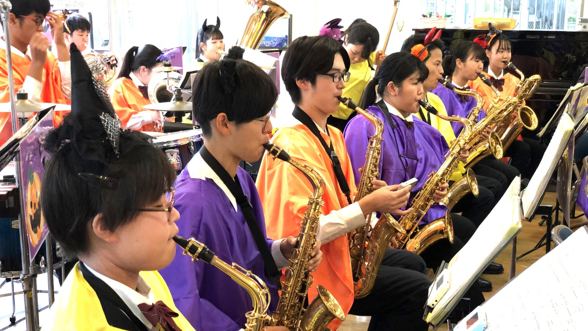 今回の演奏は3年生が引退した後の新体制で初めて挑戦するポップスステージでした。部員たちは、これまでの練習の成果を発揮しながら、地域の皆様に楽しんでいただけるよう心を込めて演奏しました。披露した曲は、「テキーラ」「ユーロビートディズニーメドレー」「演歌メドレー」「童謡メドレー」「フジサンバ」「小さな世界」の6曲です。ジャンルの幅を広げることで、幅広い世代の方々に親しみを持っていただけるよう工夫しました。