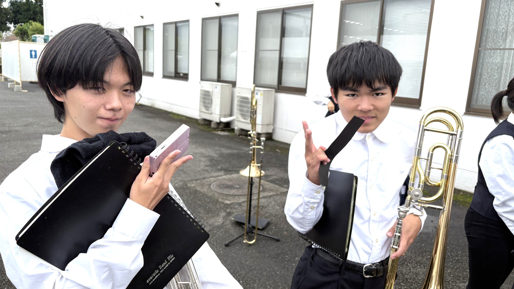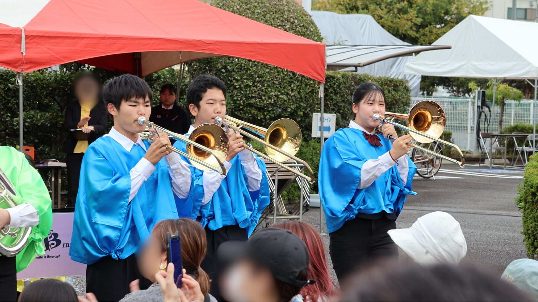 当日は校外模試と日程が重なっていたため、部員たちは限られた時間の中で準備を進め、模試の合間を縫っての参加となりました。それでも、部員一人ひとりが「地域に愛されるバンド」という目標を胸に、精一杯の演奏を届けることができました。