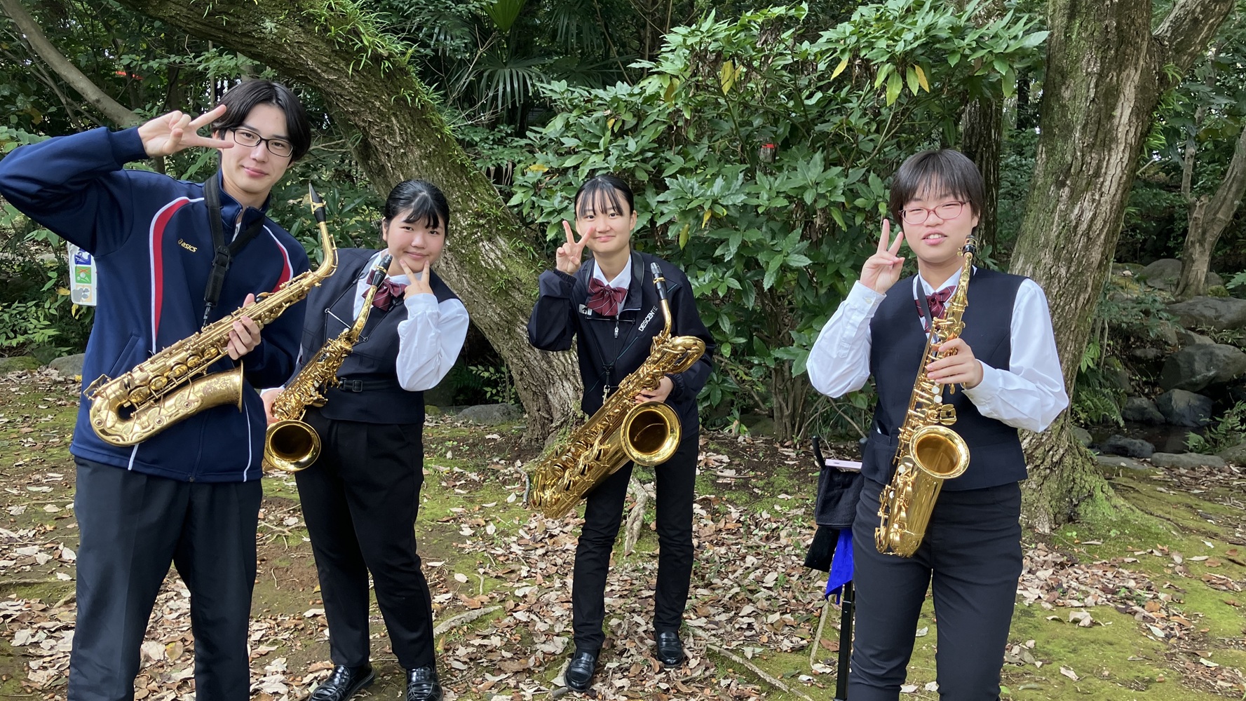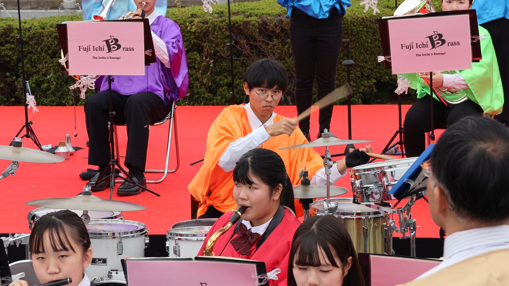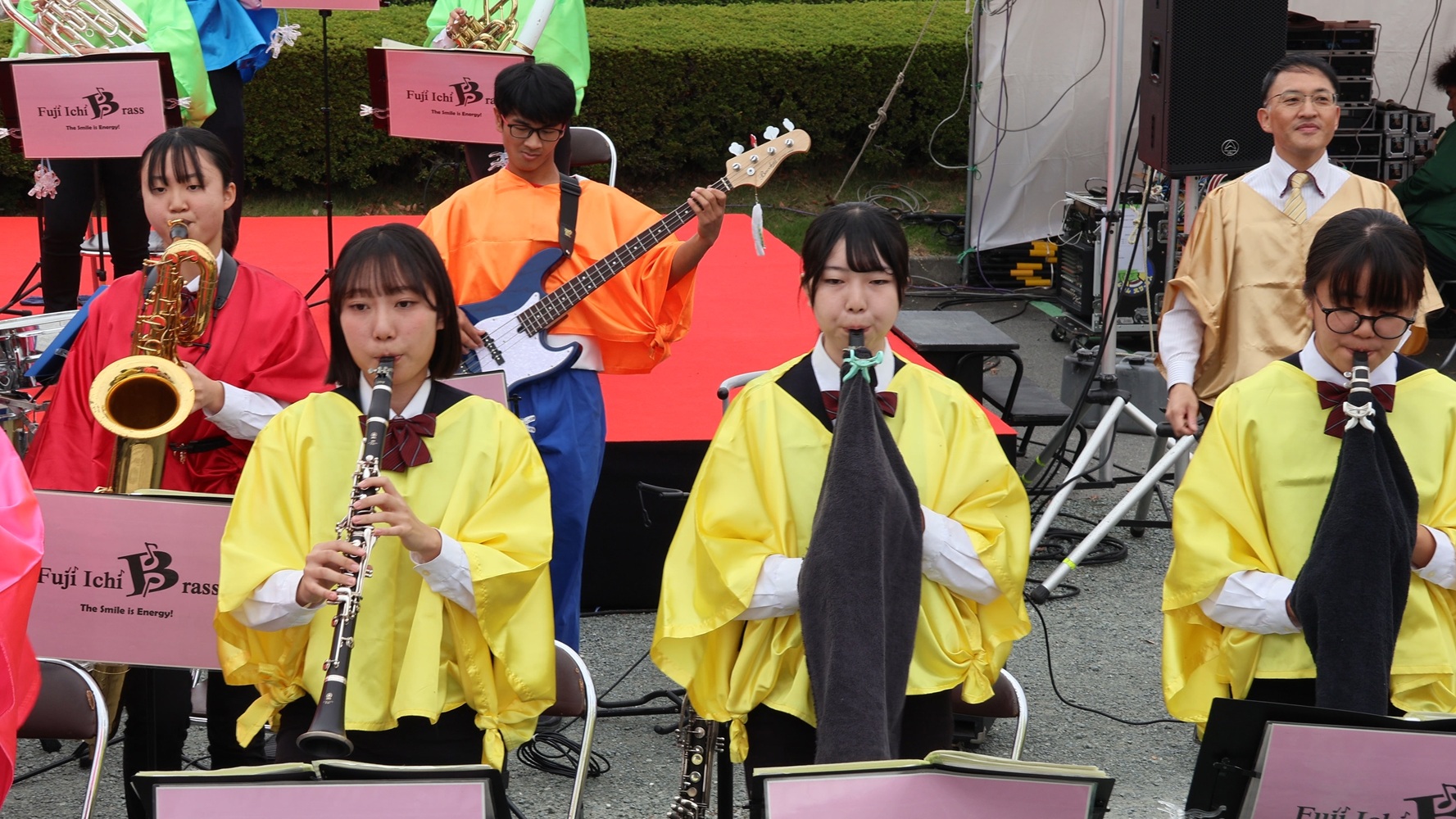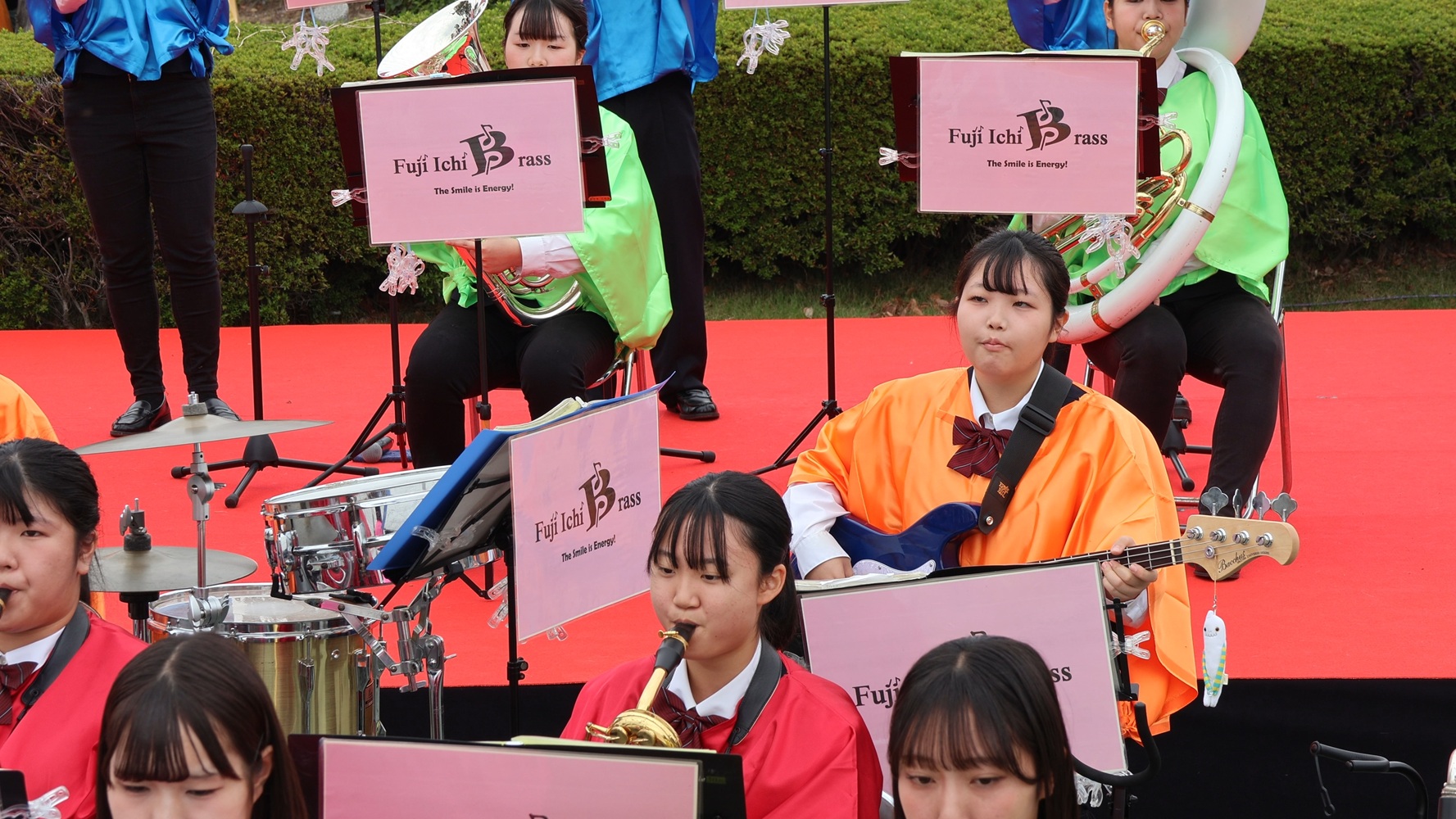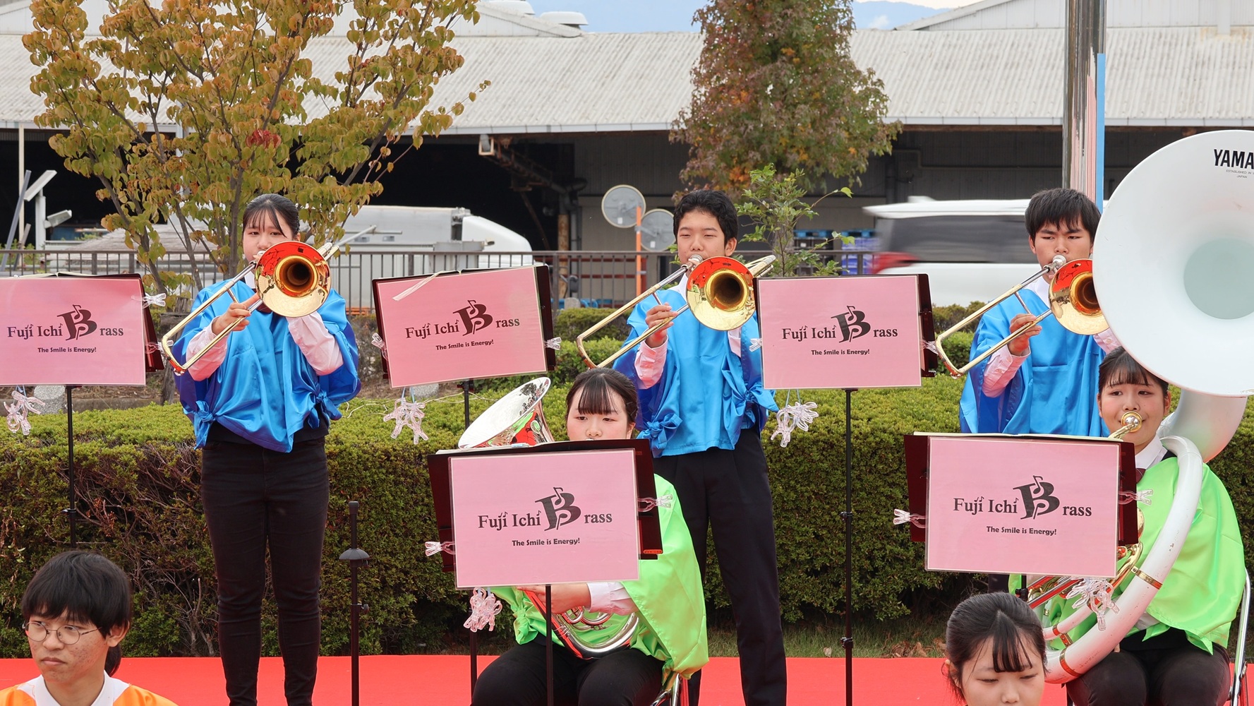 令和7年11月2日(土)に富士市中央公園で開催された「第38回富士市産業まつり商工フェア」において、本校吹奏楽部がステージ演奏を行いました。