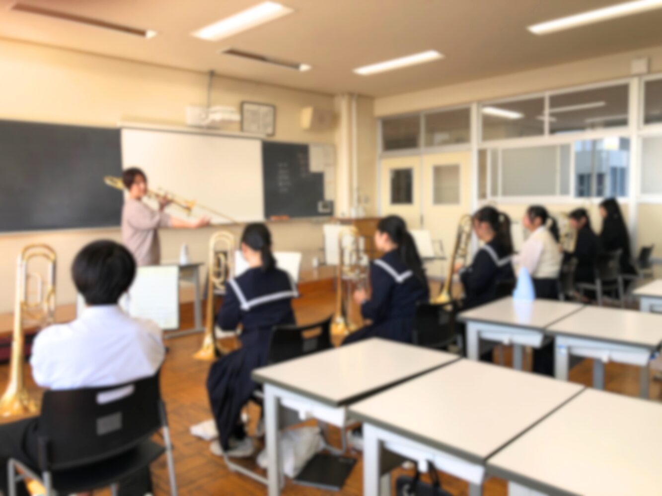 - 理解しているつもりだったけど、意外と分かっていなかったところがたくさんありました。音の出し方について考えたことがなかったけど、きれいな音の出し方を教わったら、すごくきれいになりました。最初はこもった音だったのが、最後の頃にはハッキリ響く音に近づけていてうれしくなりました。「4分音符」など理解しているつもりでも「説明」ができなくて、そこで初めて「自分は理解できていないんだな」と気づくことができました。でも今では説明できるようになりました!今日の3時間でびっくりするほど成長したと思っています。これからの部活動でも、今回教えていただいたことを意識して頑張ります!本当にありがとうございました!(中学1年生)