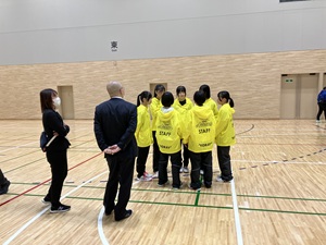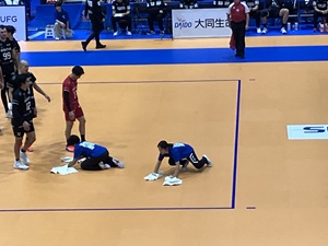 試合の開始は14:00でしたが、朝からアリーナに入り県バレーボール協会審判委員会の方と打ち合わせ及び試合を想定した練習をし、本番に臨みました。主にクイックモッパーと点示係を行いました。緊張もしましたが、試合を止めることもなく無事に務めあげました。