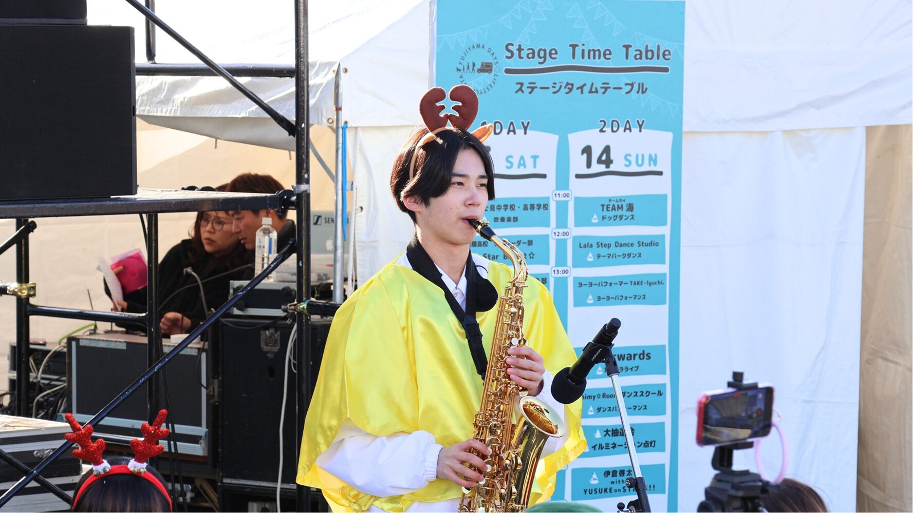 当日の午前中は曇り空で非常に寒く、楽器の音出しにも気を遣うほどでした。しかし、私たちが演奏を始めた13時頃には雲が切れ、青空が広がり、暖かな日差しが差し込む絶好のコンディションに。天候の変化とともに、会場の雰囲気も一気に明るくなり、観客の皆様の笑顔が増えていくのを感じました。