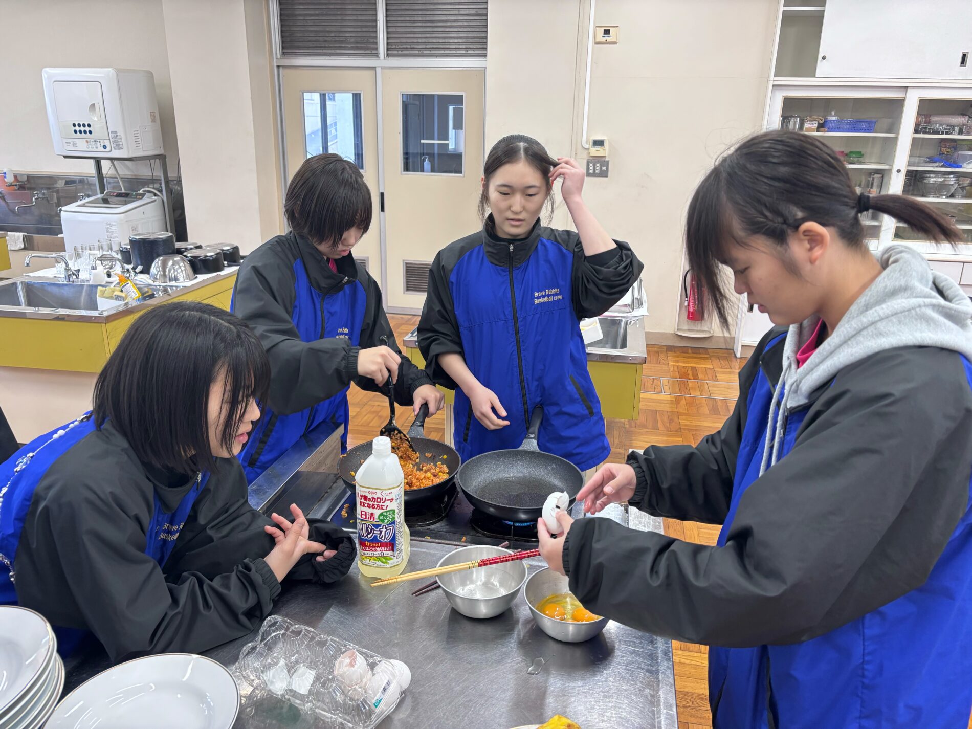 食事も自分たちで用意をし、サーターアンダギーやオムライスなどを作りました。