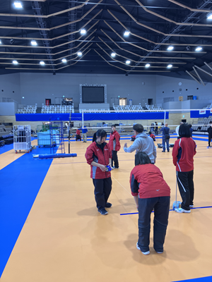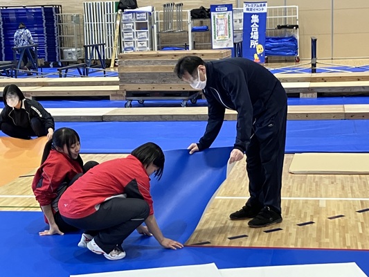 3月14・15日に北里アリーナで行われたSVリーグにコートオフィシャルとして運営補助を行いました。今回は3月12日の設営日にも北里アリーナへ行き、コネクトマットの敷設とラインテープ貼りを地元協会の方々に指導を頂きながら行いました。